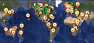 Beekeeping associations are identified on the map as international, national, regional, or local. Each marker provides the city, state, and country where the association is located with a link to their website. The map also links to industry events and interesting articles about beekeeping around the world. You can filter the map by association, event, or article.