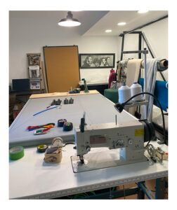 You don’t need a fancy workspace to make an enclosed apiary. I made my first with my home sewing machine at my dining room table. However, if you want to make enclosed apiaries for others, consider setting up a dedicated workspace so it doesn’t take over your home. Here’s the workspace that I set up in my nightmare of a garage.